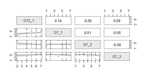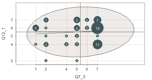 Q7_2 is relatively horizontal, indicating no significant correlation to Q12_1.