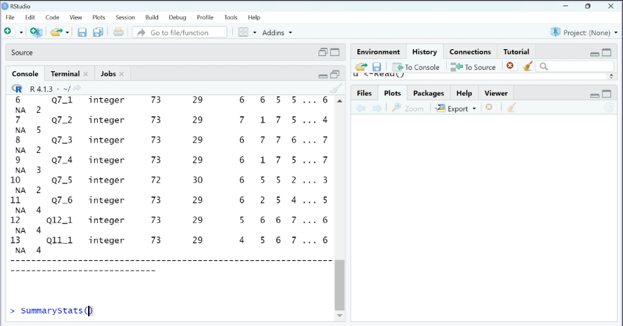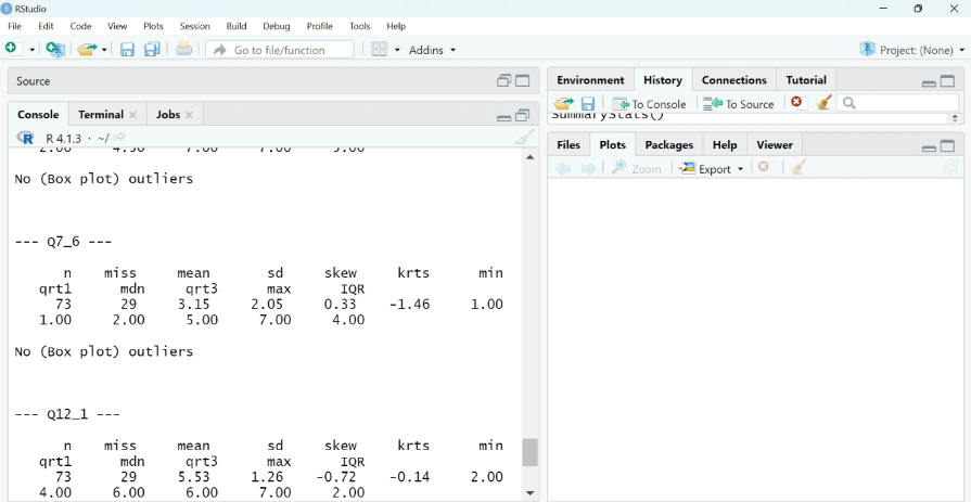 It’s pretty easy to pull some summary stats of a set of data in lessR: