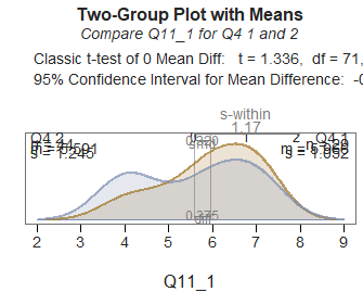However, looking at a numeric output for 11 questions can be a bit taxing on the brain. But luckily we can easily make it much easier to see visually.